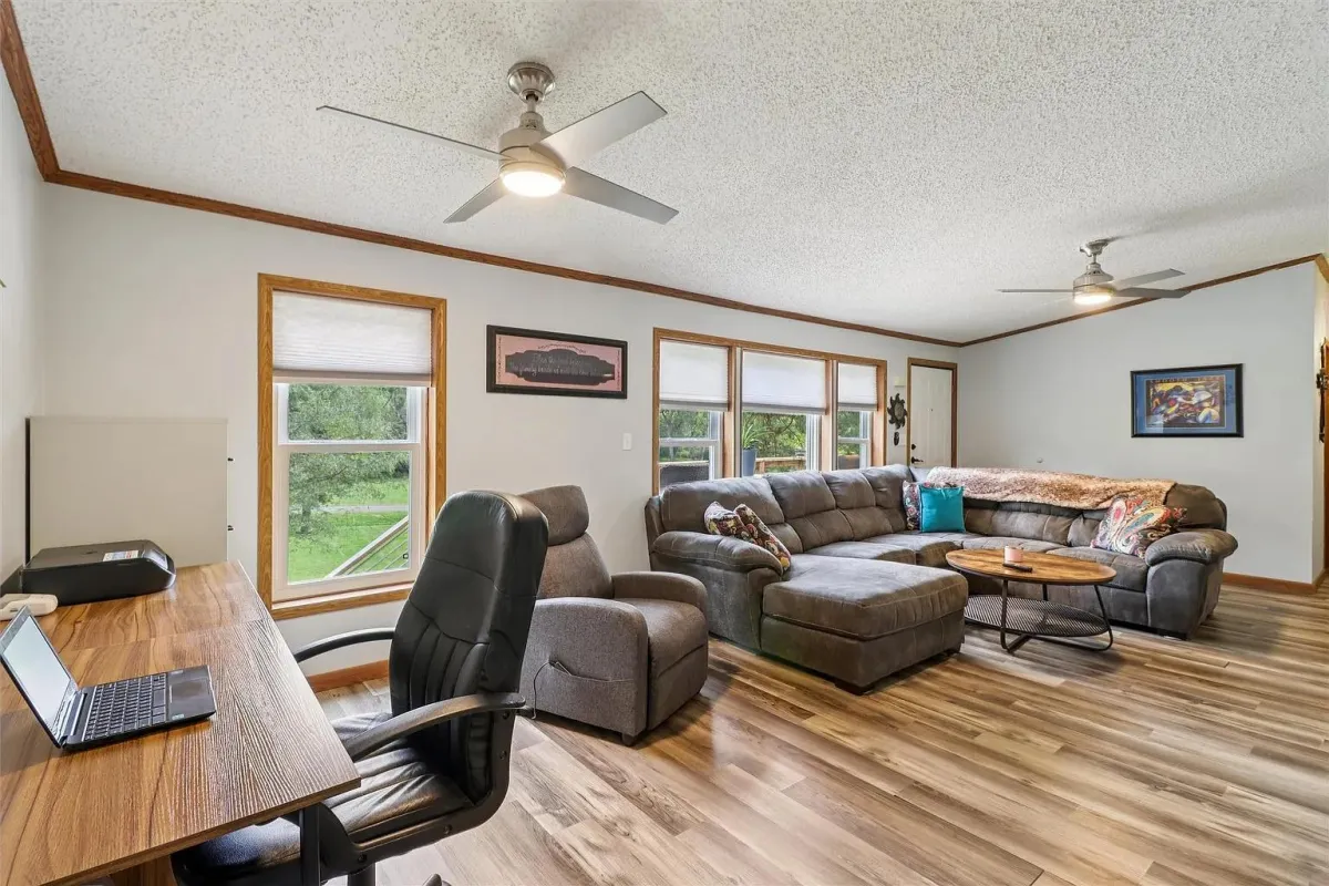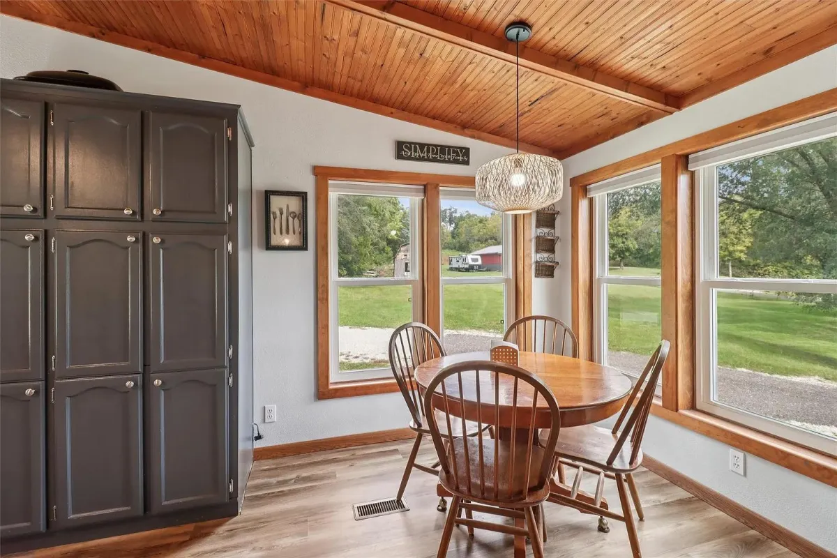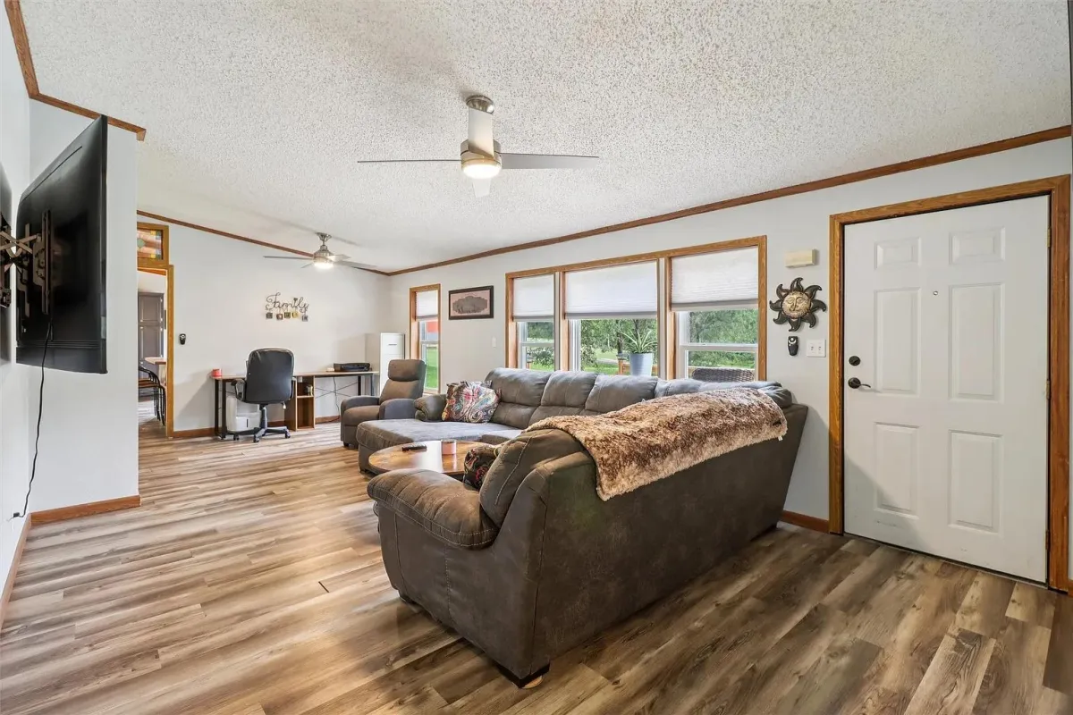 Dream garage, garden space and wildlife. This home sits on 2.5 acres inside town so you have conveniences, yet very much with a country feel with a 2 car garage with a cement floor and a big shop area in it, with bathroom hook-ups in place. Great setting to see wildlife right in town with plenty of room for a big garden and lots of different outdoor activities.