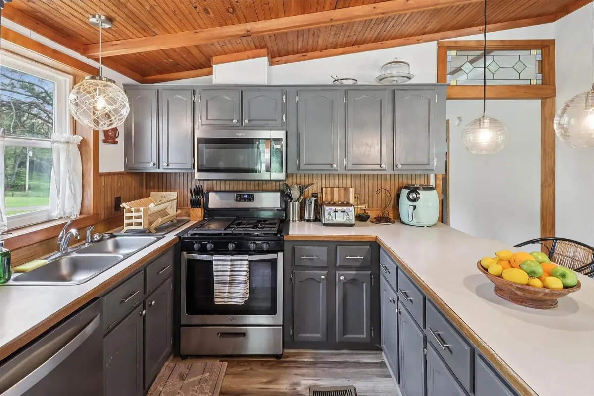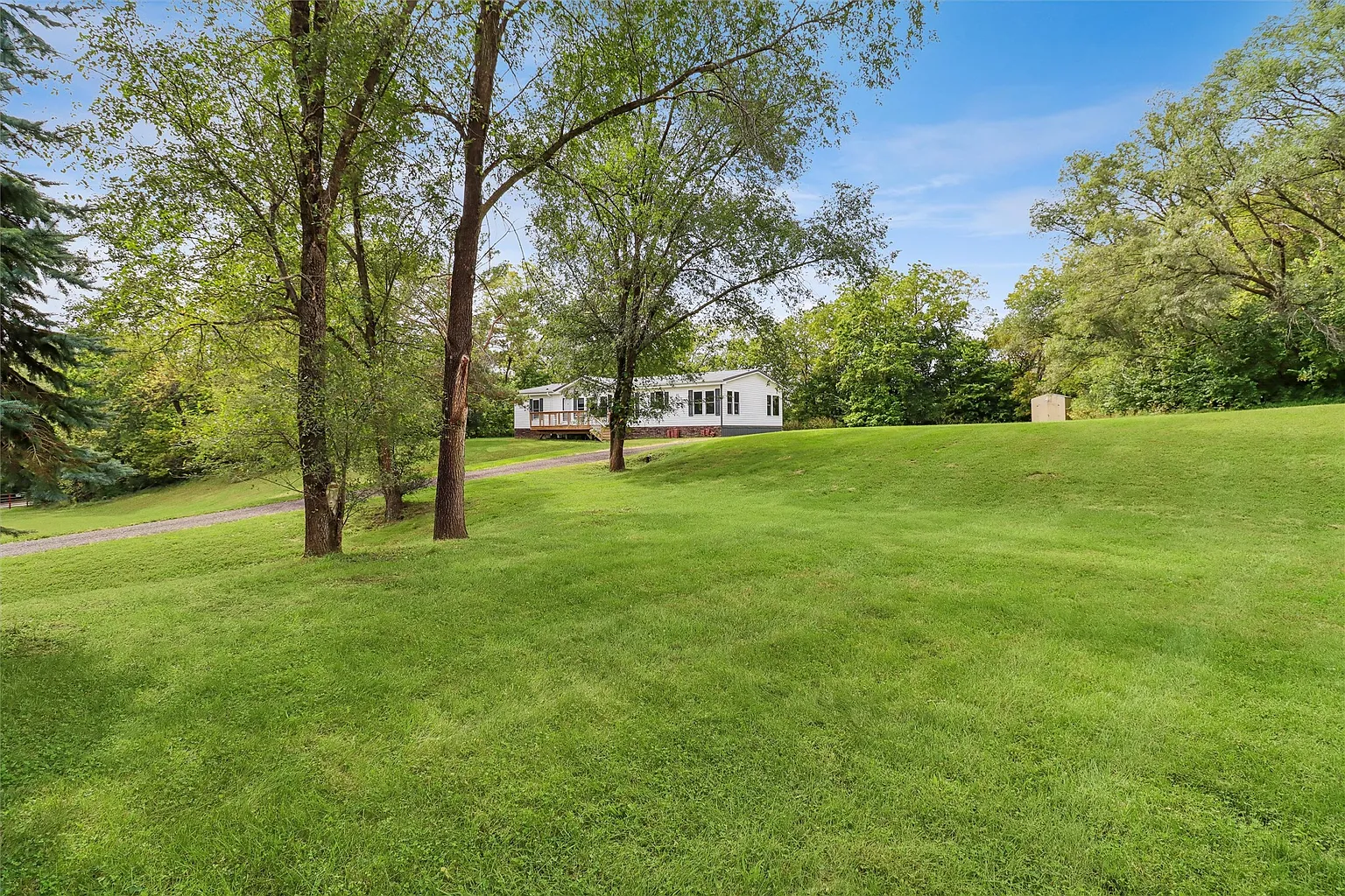 New asphalt milling driveway so your car stays clean as you pull up to your 3 bed 2 bath house with a large deck on front and covered deck in the back, great for entertaining. Why choose between country living and town convenience!